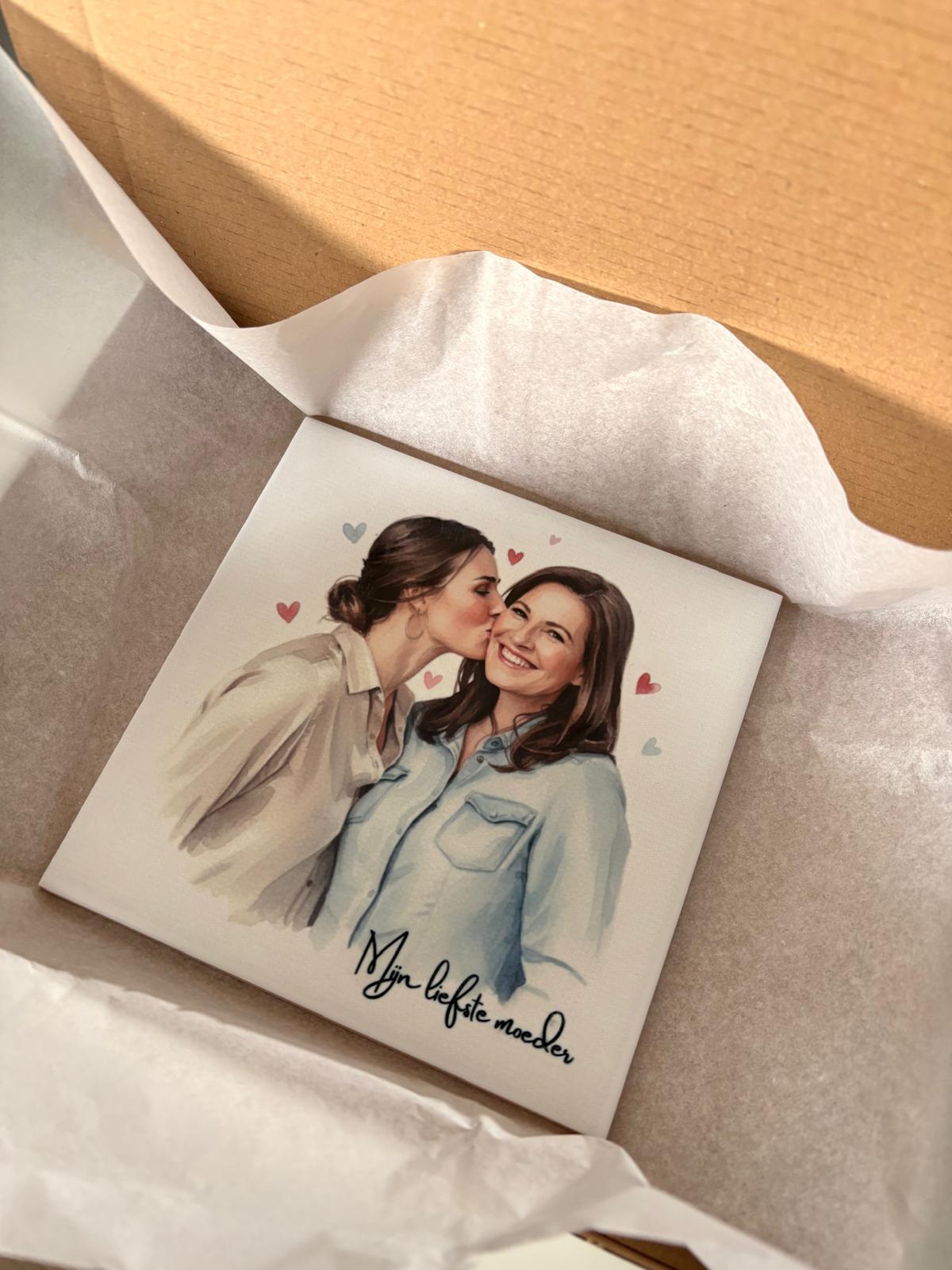 Jouw foto als cartoon op een tegeltje
